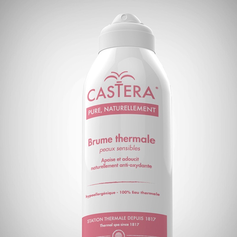 Castera sviluppa su questa base una linea di prodotti dermo-cosmetici pensata per le pelli più fragili e sensibili, a partire dalla pelle delicatissima dei neonati. Ogni formulazione è vegan, ipoallergenica, senza alcool e senza profumo, con packaging riciclabile — una scelta di rispetto assoluto verso la pelle e verso l'ambiente. La gamma Castera comprende acque termali spray in diversi formati per il viso e il corpo, trattamenti lenitivi e idratanti per pelli reattive e sensibili, prodotti specifici per la routine quotidiana di neonati e bambini, e soluzioni per la cura nasale con acqua termale isotonica.