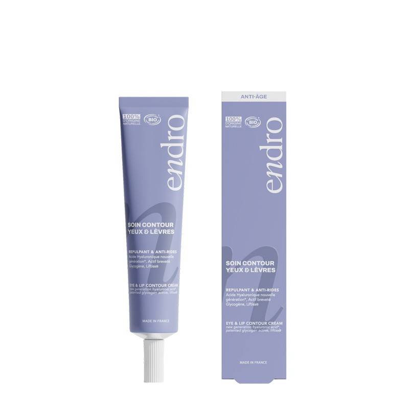 Contorno occhi e labbra anti-age Endro Cosmétiques con acido ialuronico multi-peso, LIFTISS® e glicogeno vegetale brevettato. Leviga rughe e segni di stanchezza, migliora elasticità e luminosità della zona perioculare. Senza profumo, formula 100% naturale.