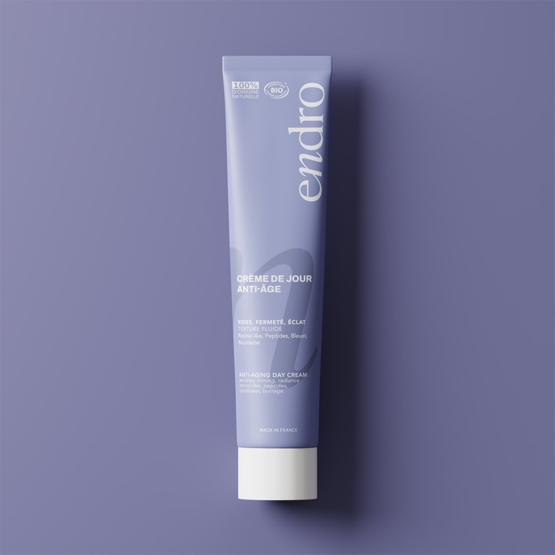 Crema viso anti-age Endro Cosmétiques 100% di origine naturale con retinol-like vegetale, peptide e chiretta verde. Migliora elasticità, luminosità e compattezza della pelle, con azione neurocosmetica levigante. Texture fluida, adatta anche a pelli sensibili. Certificata bio e vegana.