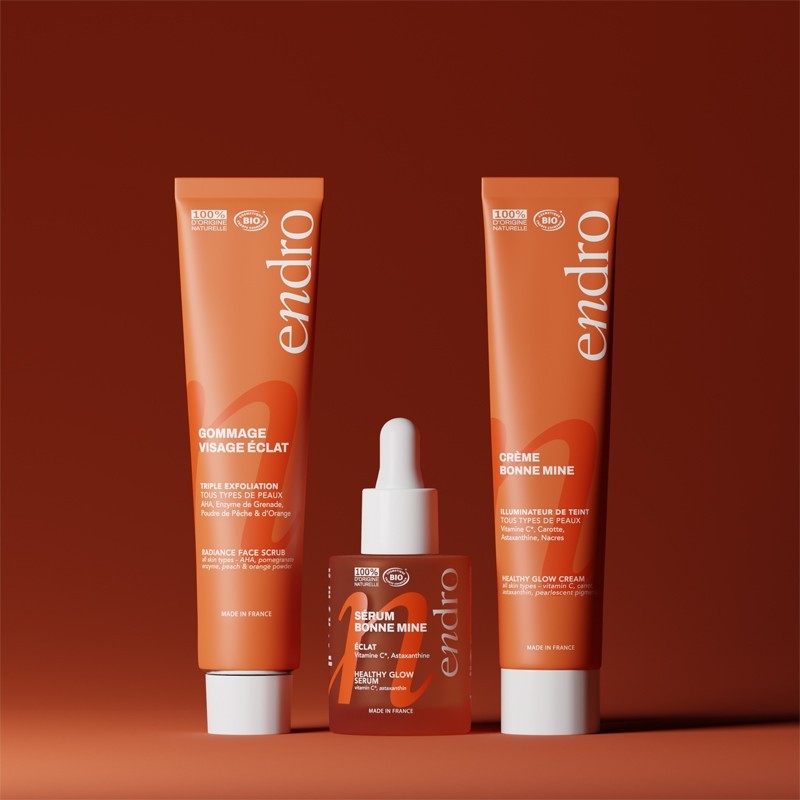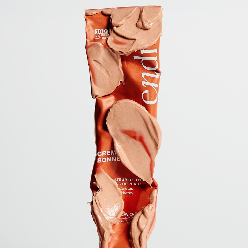 Crema Bonne Mine Endro Cosmétiques 100% di origine naturale con vitamina C stabilizzata, astaxantina e pigmenti perlati. Dona un teint luminoso immediato e aiuta a uniformare il colorito delle pelli spente. Texture fluida e leggera. Certificata bio e vegana.
