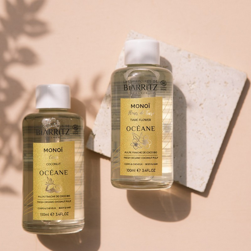 Grazie all’olio vergine di noce di cocco bio e al burro di monoï, la pelle risulta morbida e vellutata, i capelli brillanti e setosi.