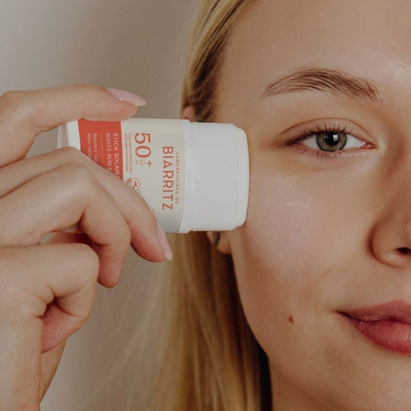 Lo Stick Solare White SPF50+ Laboratoires de Biarritz è stato sviluppato per offrire protezione mirata a zone sensibili e difficili da proteggere come naso, zigomi, orecchie e cicatrici recenti.