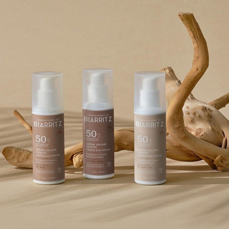 La Crema Solare Viso Colorata SPF50 Beige di Laboratoires de Biarritz unisce alta protezione solare e azione uniformante del tono della pelle.